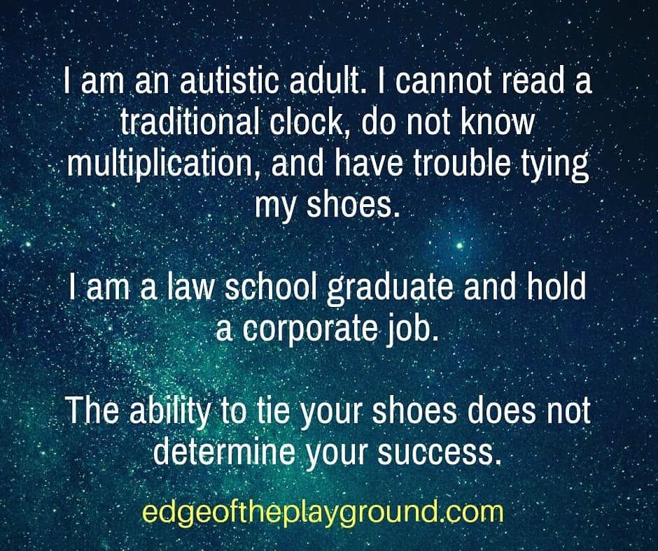 Our son is barely learning how to put on socks on his own, which is a huge step. I cannot even fathom teaching him how to tie his shoes. but that ability is not tied to the success that he may have in the future. 💙