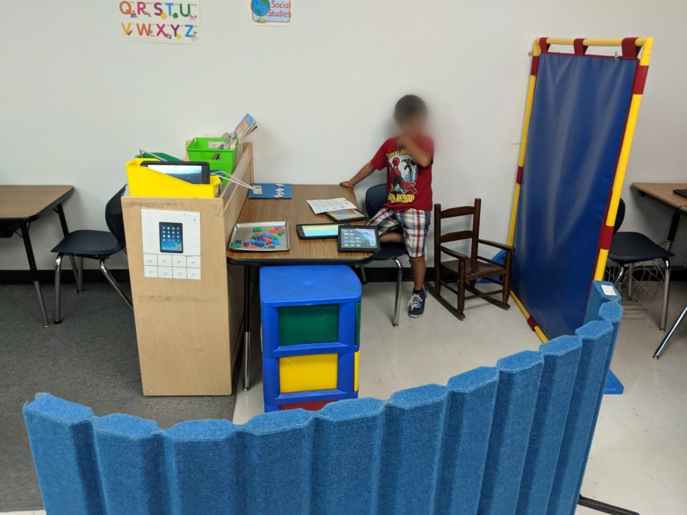 He went straight to his classroom. He went straight to his work station. He was happy and smiling and being silly. He let us talk to his teacher, discuss the issues, and we talked about ways to help him at home. We stayed over 30 minutes without any issues. He even had to go to the restroom so he went to his calendar and moved the PEC to bathroom to let my know husband know he needed to use it.