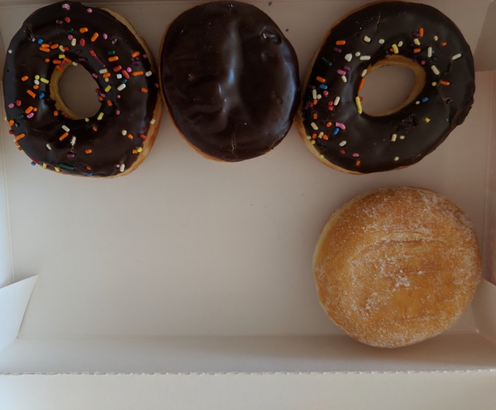 My daughter decided to buy doughnuts this morning. The monkey likes chocolate sprinkle doughnuts so she made sure to get some of those. She asked for a cherry filled sugar doughnut for herself.