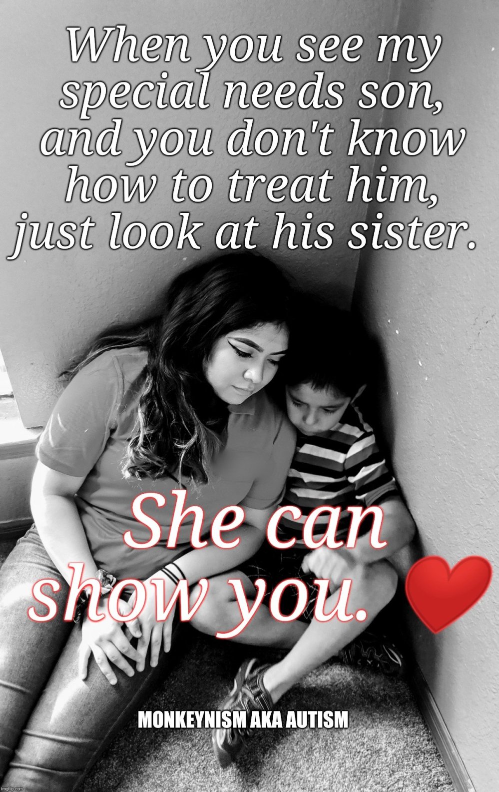 When you see my special needs son, and you don’t know how to treat him, just look at his sister. She can show you. β€οΈ