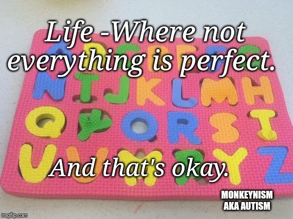 A few days ago, we were in the waiting area at our therapy place. We were waiting for his fairly new therapist. In the waiting area, there are various decorations and some toys for kids to play while they wait for their session to start. My son was struggling with the letter A on the wall. He kept going to the wall and removing the letter and putting it back. He was struggling to align it to his liking. I had to be careful every time he did this because there were people that were sitting close by. And our monkey can be overwhelming.