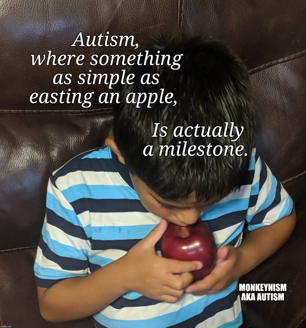 Then she told me about apples. He loves apples. I asked her, “He does? Cut up apples? We’ve tried apples before, they’ve been a hit-and-miss.” And she told me, “Nope. Entire apples!”