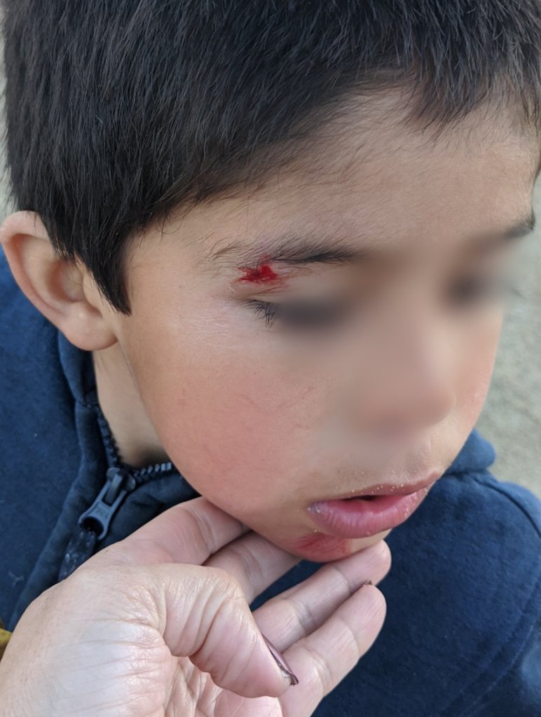 My dad called me at work. The monkey was running between his trampoline and the swings. He tripped. Scratched his chin. But his eyelid was cut open. They couldn’t stop the bleeding.