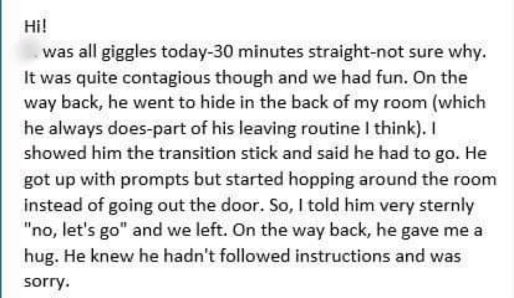 Uncategorized Speech therapist update. Posted by Monkeynism AKA Autism on February 20, 2020 This email is from my son’s speech therapist at school. I just love to read these stories. ❤️ Share this: Click to share on X (Opens in new window) X Like Loading...