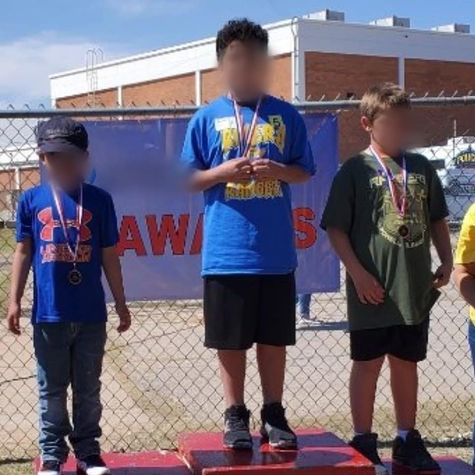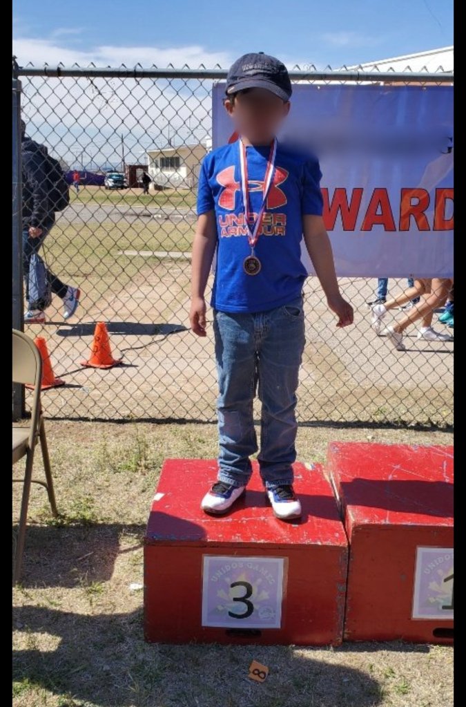 Third place! He kept his cap on. He ran in the race. He walked in the parade. He didn’t mind the crowds and noise. He even stood in the podium!