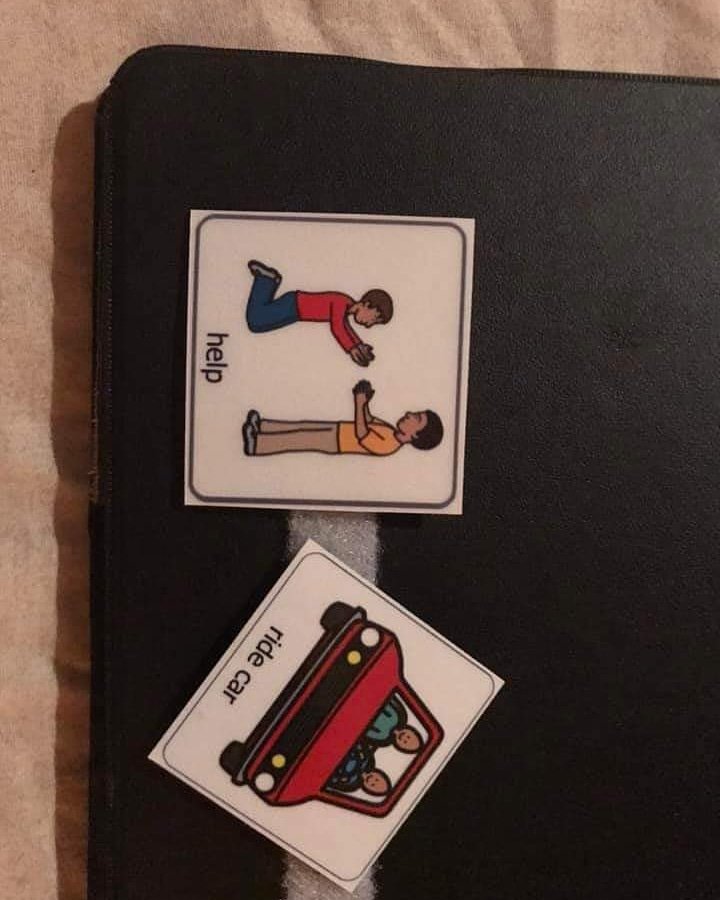 Last week, he couldn’t find the car ride PEC. So he put the help PEC. I asked him if he needed help and he clapped (his sign for more). Then I went thru the binder and two of the pages were sticking together. So when I un-stuck them, he got the car ride PEC and placed it in the front of the binder. 🥰