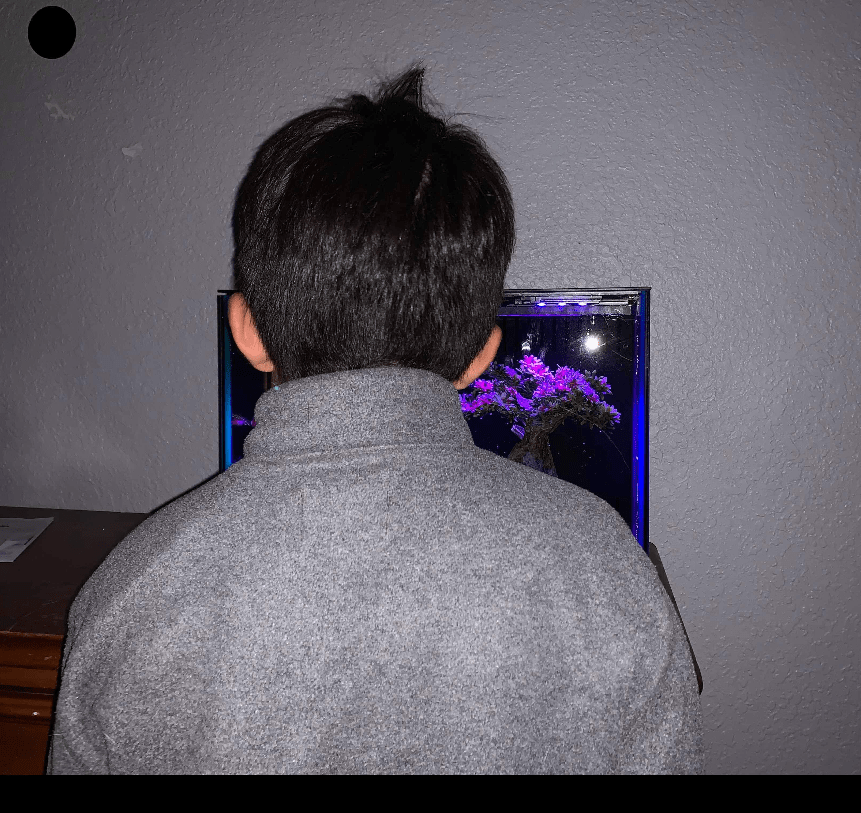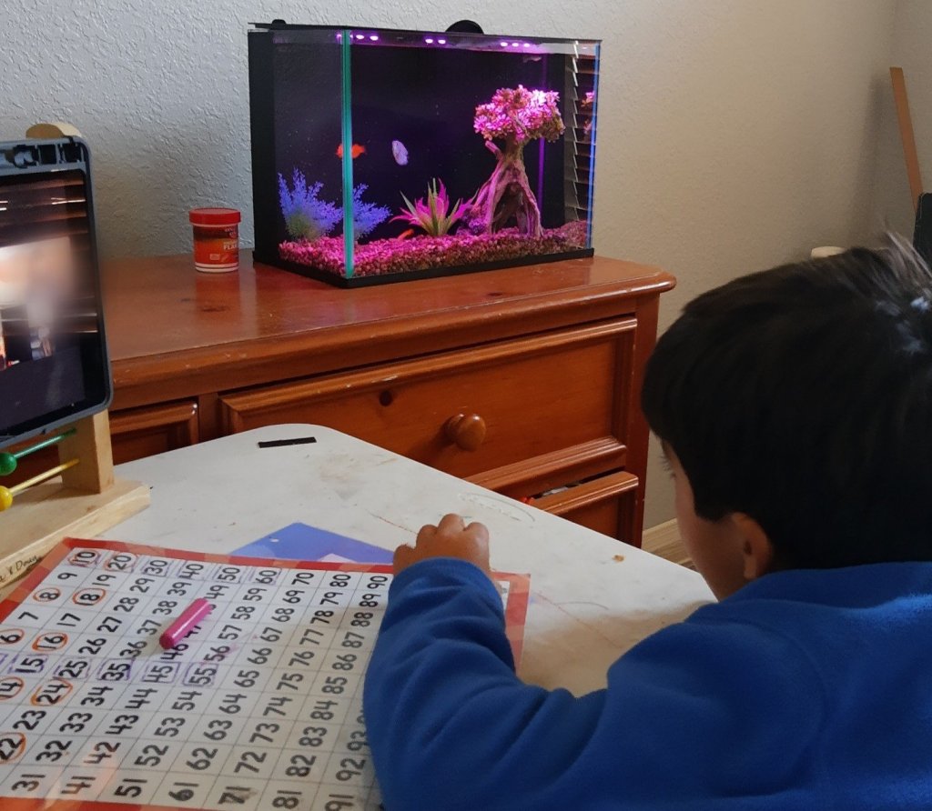 During this morning’s class, he was very calm. He did his work and would keep looking at the fishes swim. The fish tank has a calming effect on him. It’s wonderful.