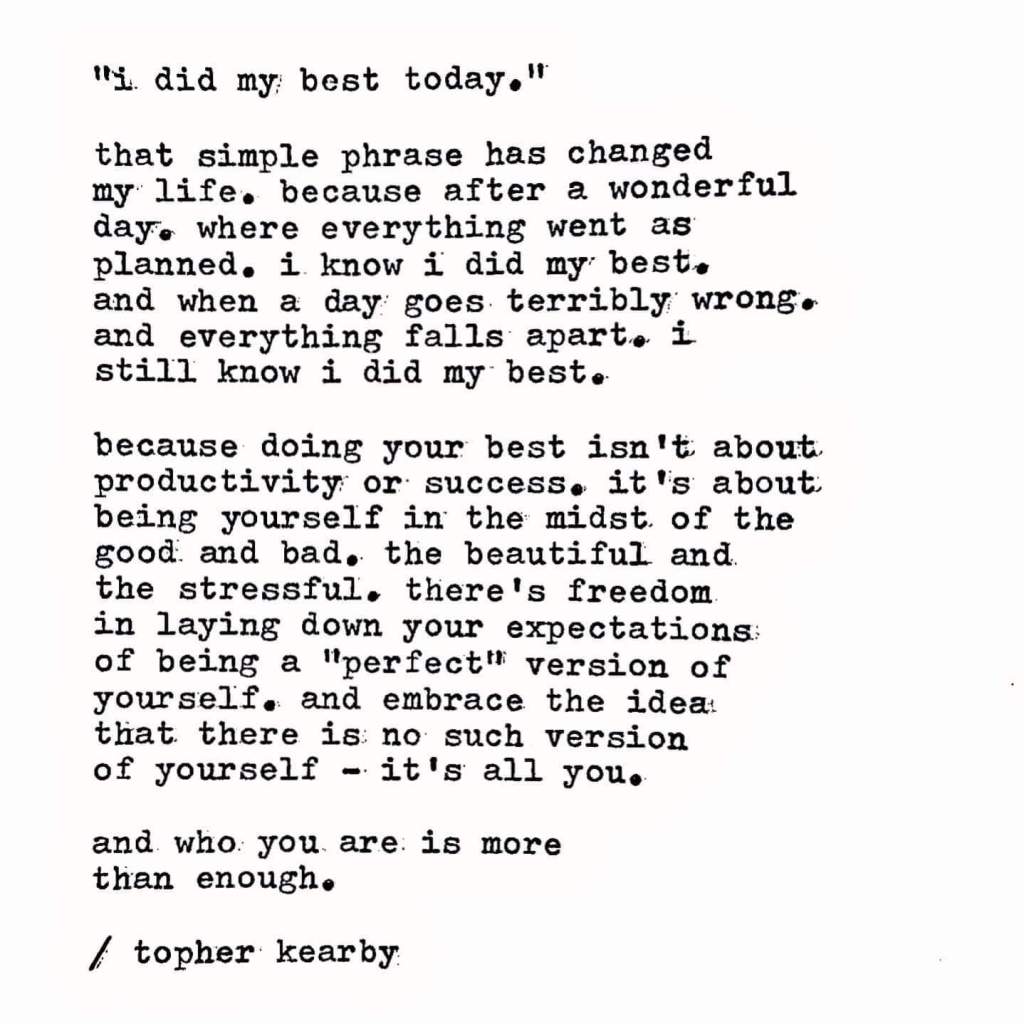 “There’s freedom of laying down your expectations of being a ‘perfect’ version of yourself and embrace the idea there is no such version of yourself. It’s all you. “