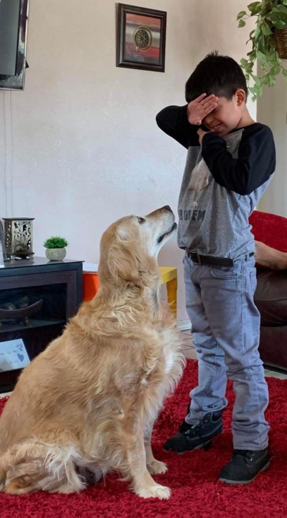 You see Benito is a different type of dog. He thinks everybody is his best friend. Friends and family who visit are greeted by Benito and he refuses to leave their side. He is such a hospitable guy and a friend to all. But more importantly he is amazing to our monkey. Benito loves to approach him and spend time with him. He constantly looks for him and is playing gently with him. At times our monkey just ignores him, but Benito loves to spend time with him. During the hard meltdowns, Harley tends to step away, but Benito is there trying to comfort as best as he can. We have to move him on the days when our son starts to pinch and scratch as we don’t want Benito to get hurt. But there are days where they play together, and the monkey is laughing with Benito. He loves to be with our son. We couldn’t be more grateful.